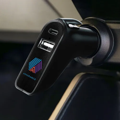 This versatile USB and Type-C port car charger is the perfect companion to charge your devices and serve as an emergency safety tool while on the go. It also includes seat belt cutter and a great addition to any safety kit. Size: 82.5×48×22.5mm DC Input: 12V~24V Output: 5V/3.0A total Each port maximum 5V/2.4A Function: Car charger Safety hammer Safety belt cutter Material: ABS & Aluminum