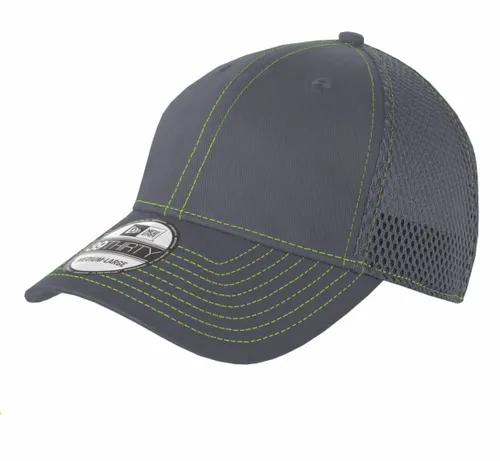 A stretch fit offers superior comfort while contrast stitching gives this breathable cap visual appeal. | Fabric: 100% cotton in front two panels; 100% polyester Spacer Mesh in mid and back panels Structure: Structured Profile: Mid Closure: Stretch fit 39THIRTY FIT: Features a casual look with a stretch-to-fit styling, a contoured crown and precurved visor. Structured for stability with a classic cap shape. New Era products may not be resold without embellishment.