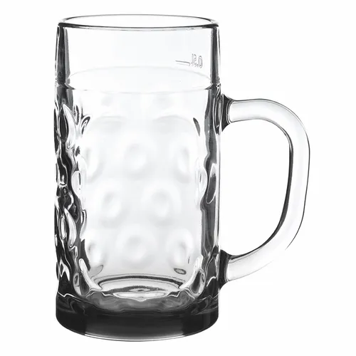 Large Beer Glass. Traditional Dimpled Shape Design. Thick Handle. Holds 22 ounces. Made in the U.S.A. Recommended Hand Wash Only