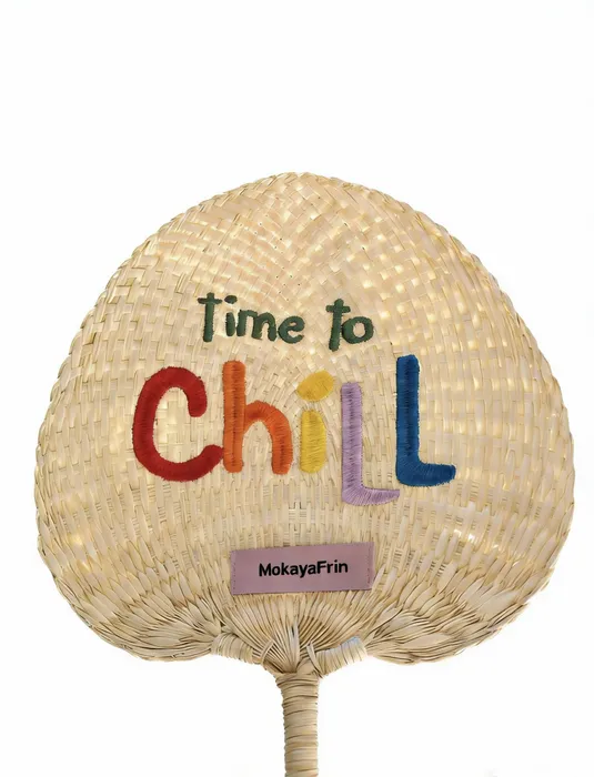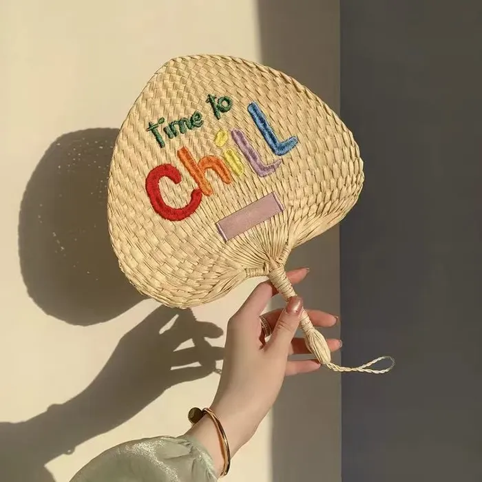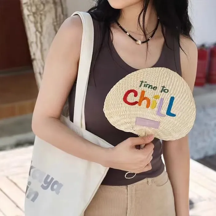 A custom woven hand fan is a 100% natural fan handcrafted from fragrant reed and typha cattail, featuring a biodegradable, eco-friendly design with no chemical additives. Available in circular and peach heart shapes, these fans measure 8.7 inches and offer a unique, skin-friendly texture that highlights both sustainability and style.