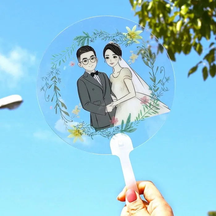 A custom plastic hand fan is a lightweight and durable fan made from plastic, featuring a 5" plastic rod for easy handling. Available in seven unique shapes—round, square, diamond, heart, star, bread, and oval—these fans can be printed in full color, making them a fun and versatile way to showcase your brand or message.