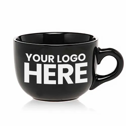 Bowl Shaped Handled Custom Soup Mugs. Smooth Molded Ceramic Composite. Glossy Vibrant Color Exterior Finish. Thick Curved Grip for Grab-n-Go Handling. Recommended Hand Wash Only