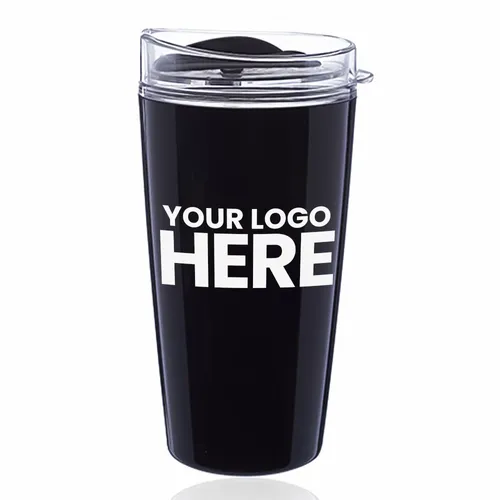 Tritan Material. Double Wall Construction for Insulation of Hot or Cold Liquids. Snap-On, Spill-Resistant, 2-Piece Thumb-Slide Lid. BPA Free. Made in the USA