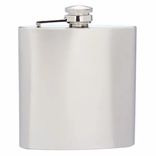 Murano 6 oz. Stainless Steel Hip Flask. Single Wall Stainless Steel Construction. Screw On/Off Cap Creates a Tight Seal to Prevent Leaks or Spillage