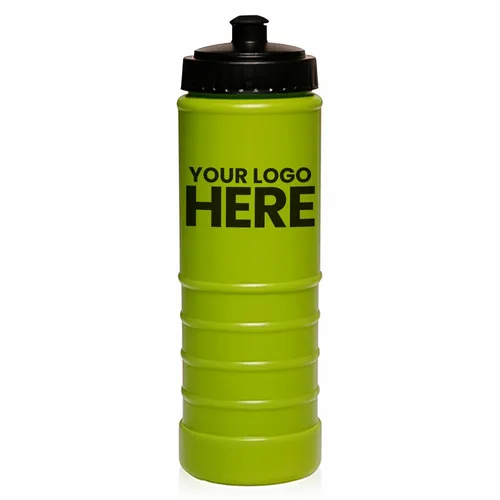 23 oz Plastic Water Bottles. Contrasting Black or White Screw-On Lids. Features a Push Point at the Top of the Cap. Unique Grip Design