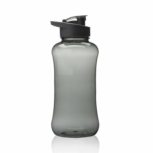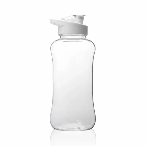 Plastic Water Bottles. Holds up to 60 oz of Liquid. Translucent Color Finish. Contrasting Solid Colored Caps. Built-In Carry Handle and Flip-Top Lids