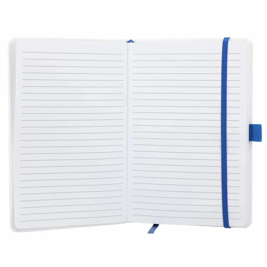 The 5.5 x 8.5 FSC Recycled Bamboo Fiber Bound Notebook features a bamboo fiber fabric hard cover with colored elastic closure and ribbon page marker. Includes 80 sheets of FSC recycled white lined paper. Through a partnership with 1% For The Planet, one percent of sales of all EcoSmart products are donated to environmental nonprofits.