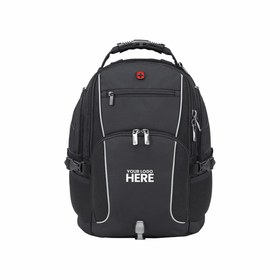 The Wenger Pro II Recycled 15 Computer Backpack combines style and luxury with sustainability. Made from eco-friendly RPET, this backpack has it all: a 15” computer sleeve, dedicated USB port with cable compartment, adjustable buckle compression straps, two side mesh water bottle pockets and a dedicated phone pocket on the shoulder strap. Organize your valuables in the easy-access, lined front pocket, the zippered mesh pocket on the interior front wall, front organizational pocket, back pocket with RFID protection or in the large zippered main compartment. This backpack features Wenger’s Airflow moisture-wicking mesh, shock absorbent backpack strap and an adjustable chest strap.