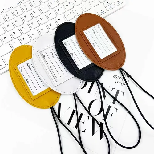Our luggage tags are crafted from high-quality materials such as PVC, leather, or acrylic, depending on the product.