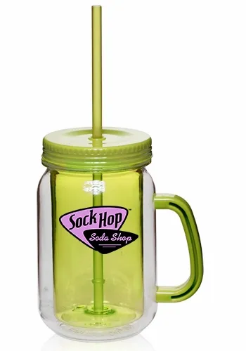 Introducing our 17 oz. Drink Delights Mason Jars with Straw, the perfect blend of charm and modern functionality for your favorite beverages. Crafted with premium quality, these mason jars feature double wall insulation, keeping your drinks at the perfect temperature for longer. The clear outside showcases the beverage inside, while the colored inside adds a pop of vibrancy to your sipping experience. With a solid color lid and matching handle, these jars exude elegance and convenience. The screw-on lid ensures a secure seal, preventing spills while you're on the move. Sip in style with the included matching color straw, providing a comfortable and mess-free drinking experience. Plus, our mason jars are BPA-free, ensuring your health is our top priority. Please note that these jars are not microwave safe. Elevate your beverage enjoyment with our Drink Delights Mason Jars , perfect for picnics, parties, and everyday use.