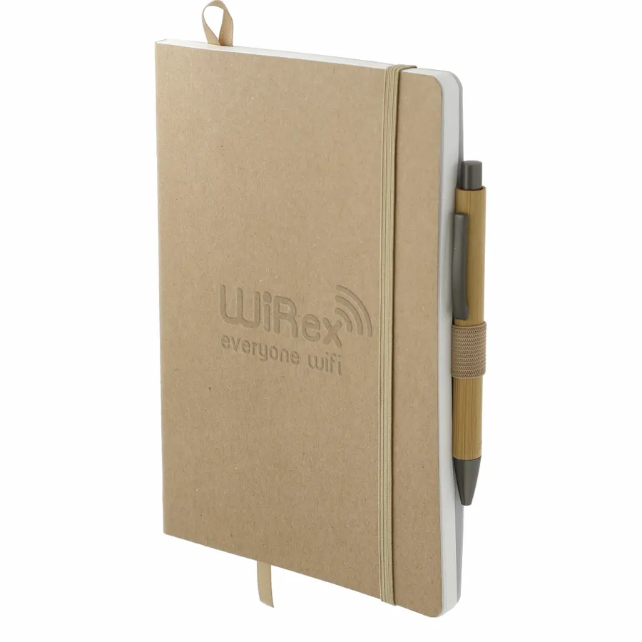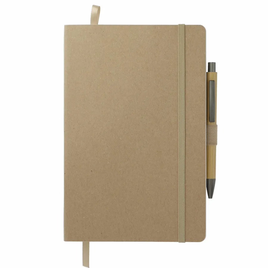 The 5.5 x 8.5 FSC Mix Stone Soft Bound Journal Set includes the 5.5 x 8.5 FSC Mix Stone Soft Bound Journal (2800-95) and Bamboo Quick-Dry Gel Ballpoint (1066-49). The 5.5 x 8.5 FSC Mix Stone Soft Bound Journal features a FSC Mix soft paper cover. It includes 80 sheets of lined stone paper, which is water-resistant, tearproof and noticeably smooth for a superior writing experience. It also features an elastic closure, ribbon page marker, elastic pen loop and back document pocket. And through a partnership with 1% For The Planet, one percent of sales of all EcoSmart products are donated to environmental nonprofits. Due to the nature of the material, there may be color variances.