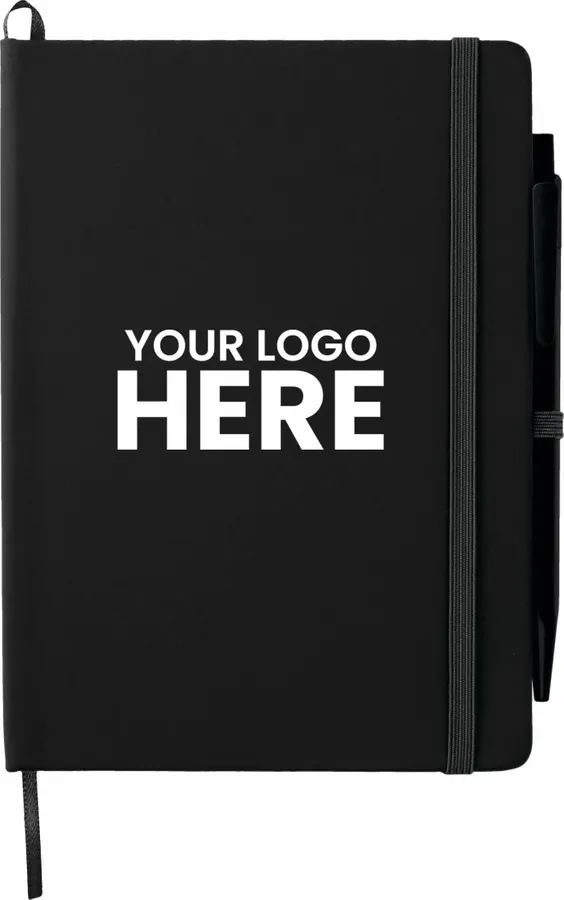 The Bullet 5 x 7 FSC Mix Prime Notebook With Pen is a hardbound notebook with color matching elastic closure, ribbon page marker, and pen loop. It contains 50 sheets of white lined FSC Mix pages and comes with a color matching pen with black ink cartridge. Note that pens are packed separately.