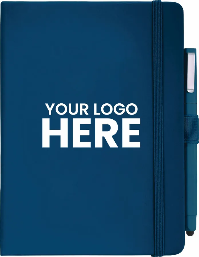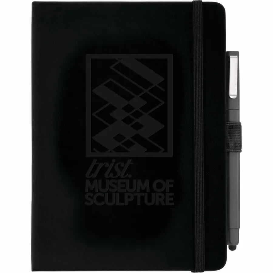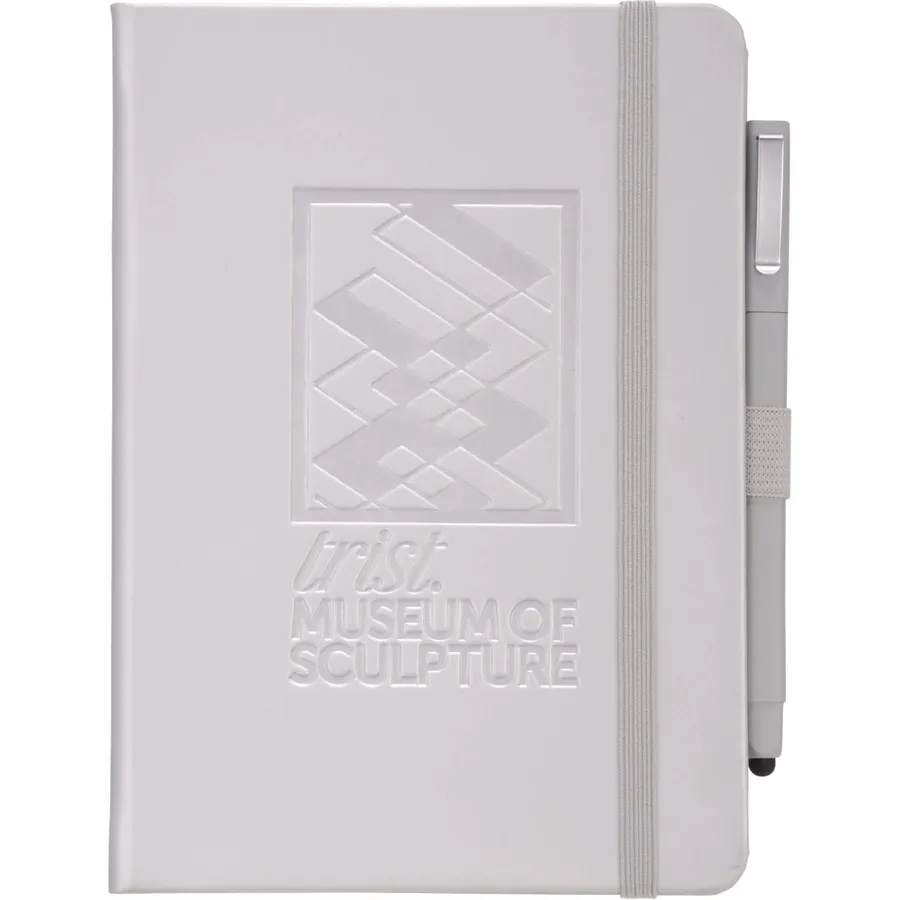 The FSC Mix Vienna Hard Bound Journal Bundle Set includes one 5 x 7 Vienna Hard Bound Journal (2800-29) and one Ambassador Square Ballpoint Stylus (6620-33). The included hardcover bound journal features a built-in elastic closure, a color-coordinated pen loop, and a ribbon page marker. It includes 72 sheets of white lined FSC Mix paper for taking notes, making lists, and more.