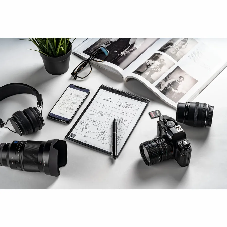 The RocketBook Letter Flip Notebook Set is designed for every classroom, office, and brainstorming session. It includes 36 pages of white lined, college ruled, dotted paper made from synthetic polypropylene materials and allows you to write smoothly using the included Pilot Frixion pen. When youre done writing, the RocketBook Notebook magically wipes clean with a damp cloth to reuse again and again! Use the RocketBook app to back up your notes, plans, lists, and big ideas to your favorite cloud storage service. Then, erase and reuse your Flip Notebook for your next adventure!
