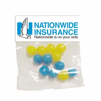 Your company will shine brilliantly with its logo printed on the Large Header Bag with Raisin Nut Mix! The trail mix is a non-melt product with available kosher certification. The full product measures 5 3/4" H x 5” W, including the massive imprint area of 4 3/4" W x 1 3/4" H atop 2 oz. of snacks. What better way to secure your company’s spot in a client’s memory than to connect it to a yummy treat? Let your next marketing tool be a beacon for new and returning customers!