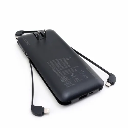Charge All 10k - 10,000 mAh Power Bank with Integrated Charging Cables and AC Plugs
