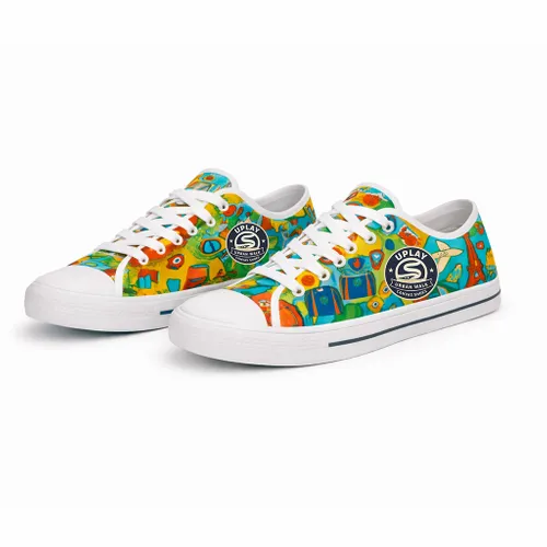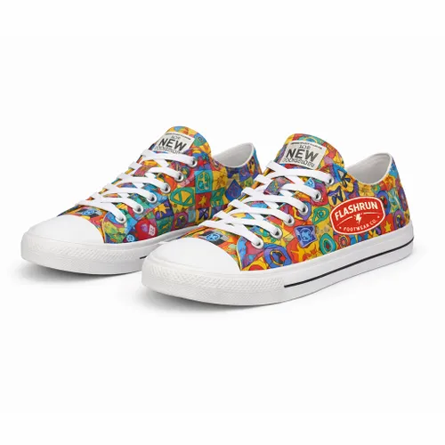 Our Custom Low-Top Sneakers offer a timeless, lace-up look that serves as a perfect canvas for your unique designs. These shoes are built with a durable canvas upper and a classic rubber toe cap for a high-quality feel and long-lasting wear. We can print your custom logos and artwork in full color across the entire shoe, ensuring your brand stands out from every angle. Whether for promotional giveaways or team uniforms, these low-tops provide a comfortable and trendy way to display your message.