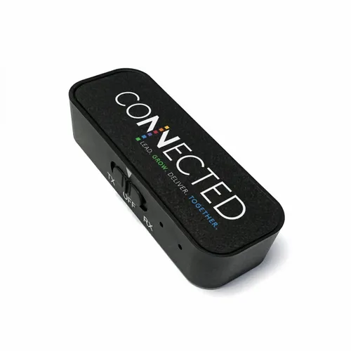 A transmitter that will connect your wireless headphones or earbuds to any audio jack. Use it on the plane, boat, or in the gym, anywhere there is an audio jack. Easily switch between transmit (TX) and receive (RX) modes. It has a 3.5mm audio aux port and Type-C charging port.