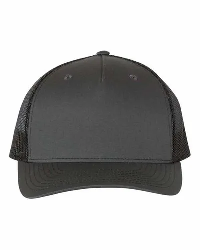 Front: 60% Cotton/40% Polyester Back: 100% Polyester Cotton/Polyester Twill Fabric, Trucker Mesh Structured, Five-panel, Mid Pro Profile Pre-curved Contrast Stitch Bill Adjustable Snapback Closure