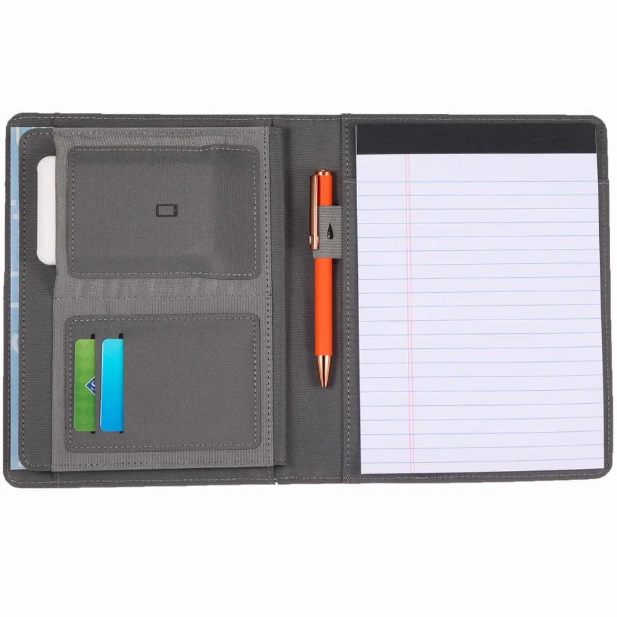 The Puffer Jr. Writing Pad with FSC© Recycled Paper is the perfect compact tool for everyday notetaking and organization. Crafted from quilted 100% rPET, it features a super soft, puffy exterior with a luxurious matte finish in neutral colors, adding a sophisticated touch to any workspace. Inside, you’ll find pocket organization, business card slots, a phone pocket, and an elastic pen loop, providing easy access to essentials. The writing pad includes a 6 x 8 recycled lined pad with 30 sheets of FSC recycled paper, making it as functional as it is stylish.