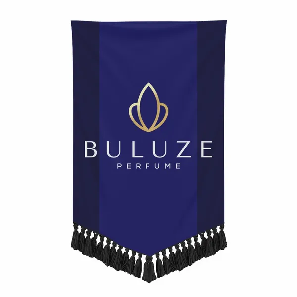 The combination of premium polyester fabric, rich dye-sublimation printing, and the decorative bottom fringe gives it a more formal and elegant feel than a typical vinyl or utility banner.