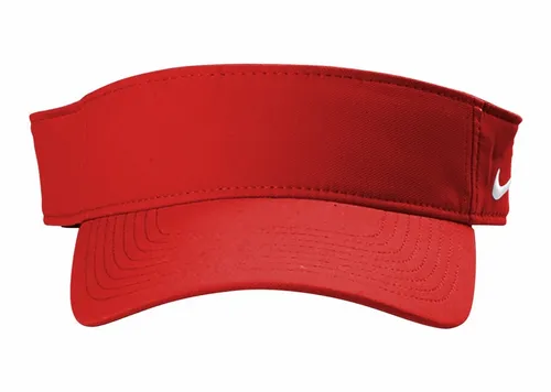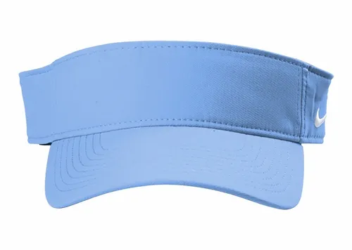 This lightweight, three-panel visor features a pre-curved bill and an interior Dri-FIT performance sweatband that folds down for easy embroidery. Hook and loop closure. The contrast Swoosh logo is embroidered on the left-side panel. Made of at least 75% recycled content and/or organic content. Please note: Although this cap is noted as M/L on the label and on the ordering grid, it is only offered in one size. It is One Size Fits All (OSFA).