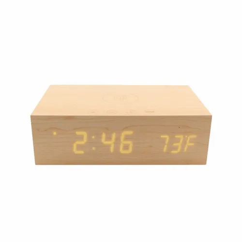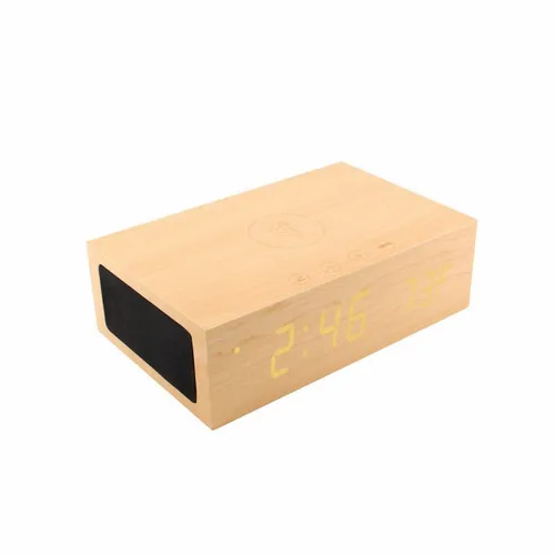 Wireless wireless speaker and wireless Qi charging station that looks great on any desktop and is a fantastic option for an executive gift. What is Wireless Qi Charging? Qi wireless charging is an exciting new technology that enables select portable devices to recharge without any wires. Simply position the device on the BlueSequoia and it will begin to charge without the hassle of having to plug in a charging cable. Features: Digital Clock, Alarm, Temperature, Material: MDF with wood veneer