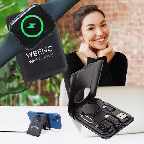 Chi-Charge Cable Card with Watch Charger - Collapsible Wireless Charging Stand and Charging Cable Carriers