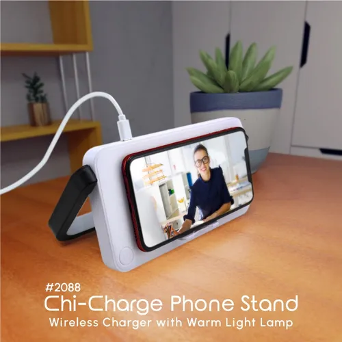 The Chi-Charge Phone Stand with Warm Light Lamp is a great little companion for the home, office, or even when traveling. It wirelessly charges up Qi-compatible devices, is a phone stand for those important video calls, and provides a warm glowing light for those late work nights. It is easy to set up and operate. Simply connect from the Type-C port with the included cable, lay it flat, and place your phone on top.