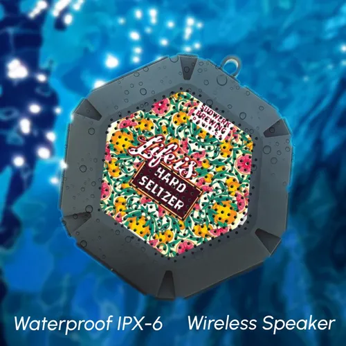 Wireless Speaker Featuring High Definition wireless® 4.2 Technology, Waterproof Great For Pool, Beach, Boating Or Any Water Activity, Pairs From Up To 30 Feet Away, 2000 mAh Lithium Polymer Battery Included, Up To 8 Hours Of Play Time Carabiner Attachment