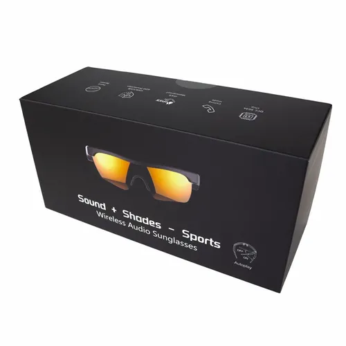 Wireless wireless Audio Sunglasses, wireless specification: V5.0 QCC3034, wireless profiles: HSP,HFP,A2DP and AVRCP, Talk time: About 6 hours (50% volume), Music playing time: About 5.5hours (50% volume), Charging time: About 1.5 hours, Rechargeable 95 mAh Li-polymer battery, Ergonomic Design for Cycling, IPX7 waterproof Qualcomm Aptx, UVA/UVB protection